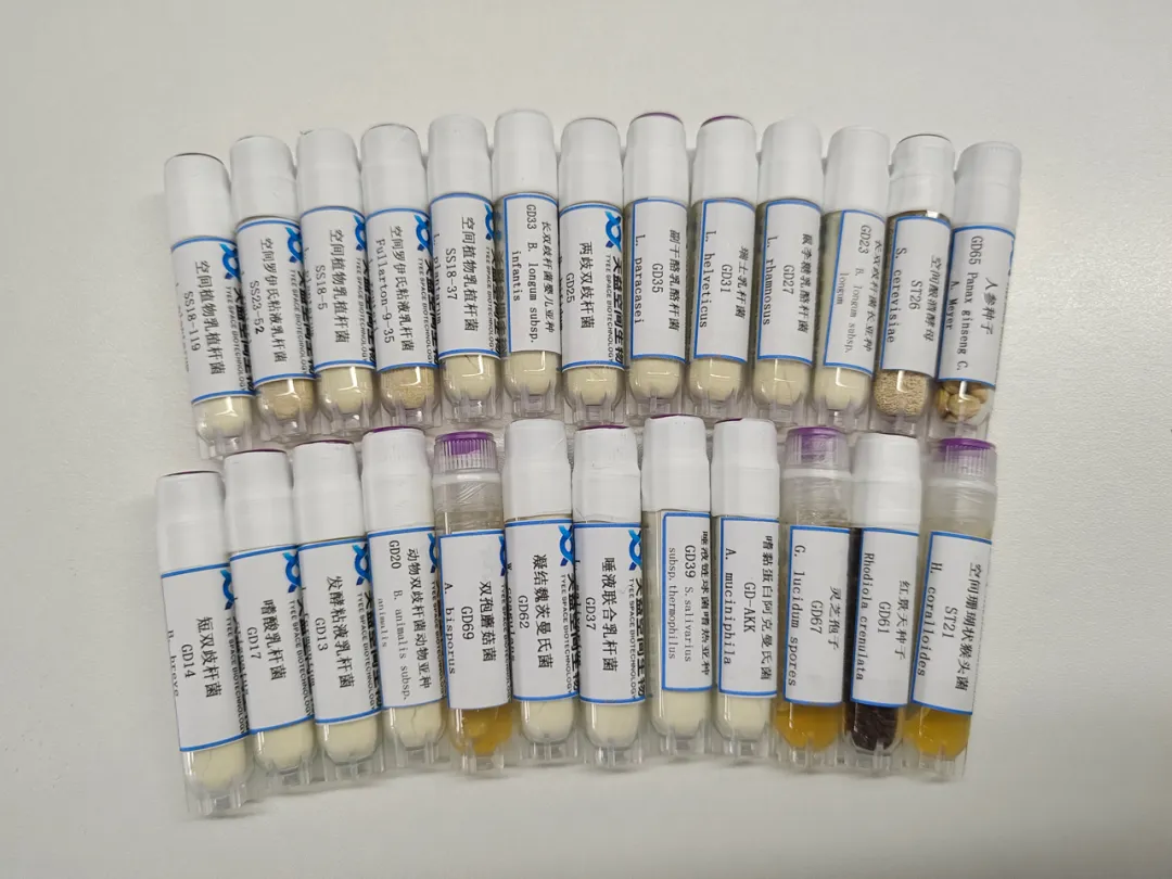 此外,天益空间生物还首次搭载了多株经地面优选的菌种及药用植物种子样本,包括嗜黏蛋白阿克曼氏菌GD-AKK、动物双歧杆菌动物亚种GD20、嗜酸乳杆菌GD17、发酵粘液乳杆菌GD13、短双歧杆菌GD14、长双歧杆菌长亚种GD23、两歧双歧杆菌 GD25、凝结魏茨曼氏菌GD62、鼠李糖乳酪杆菌GD27、瑞士乳杆菌GD31、长双歧杆菌婴儿亚种GD33、副干酪乳酪杆菌GD35、唾液联合乳杆菌GD37、唾液链球菌嗜热亚种GD39、红景天种子GD61、人参种子GD65、灵芝孢子GD67、双孢蘑菇菌GD69,旨在利用航天育种技术(空间诱变),挖掘性能更优的新种质、新菌种,扩容空间微生物资源,为空间生物后续功能开发与产业转化奠定基础。